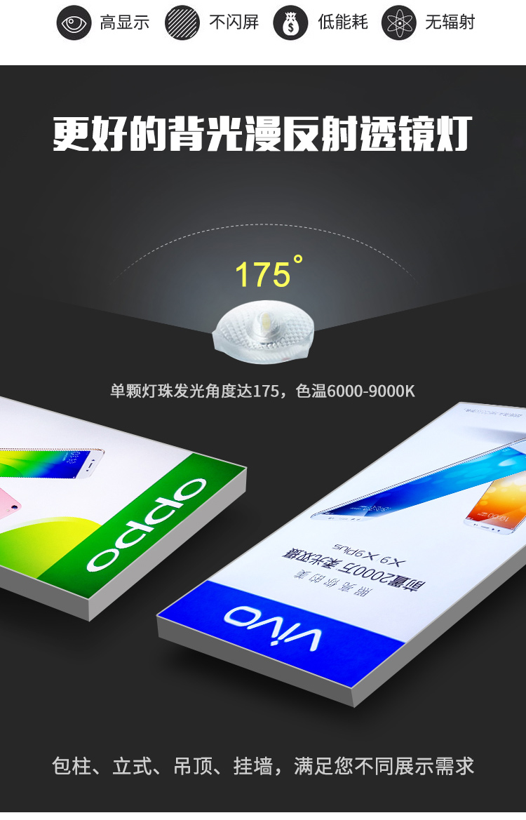 產品用途超薄節(jié)能燈箱主要適用范圍:廣告媒體、墻面裝飾宣傳、室內外指示牌……